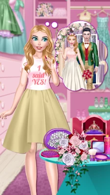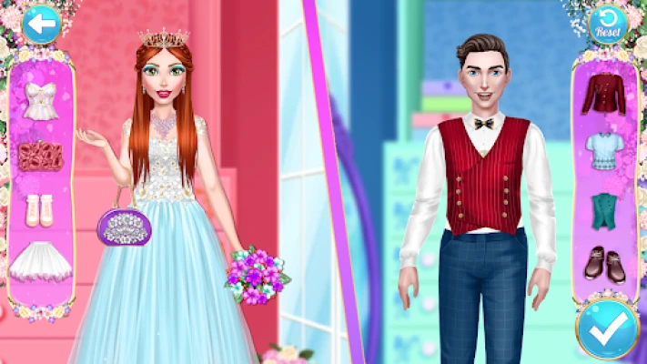 What's a wedding without a bridesmaid? You can play dress up with her too! Choose an elegant outfit from her wardrobe full of colorful dresses, skirts, blouses and many more. Take photos and keep all the memories in an album!