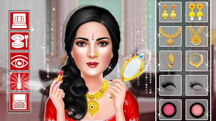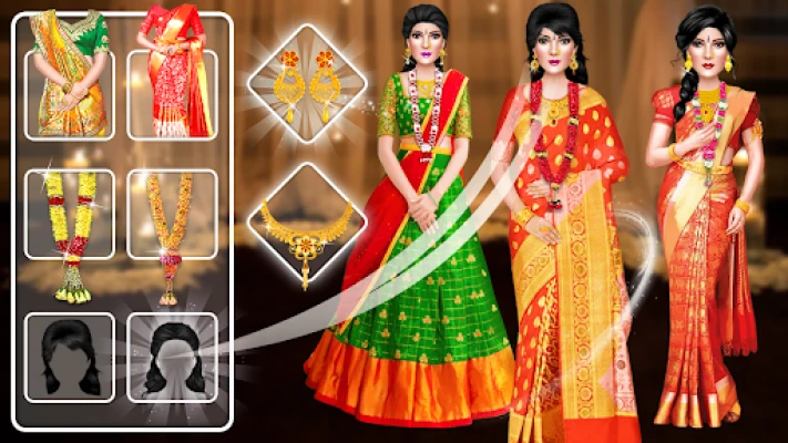 Beautiful bride can choose different style of Sarees and outfits .bride also choose beautiful flower garlands.The Indian makeup, dress up and Spa games aware with royal Indian culture. Wedding planner and Makeup Artist make look like charming bride and groom.