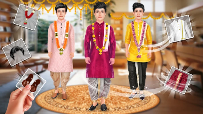 Beautiful bride and handsome groom has chose his dream of wedding style and makeover. In this game bride and groom can choose different types of best outfits and beautiful makeup kit ornaments, garland etc..