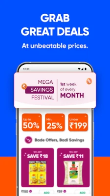 This instant delivery app brings discounts, savings, deals & bank offers on groceries with fast delivery. Enjoy the Mega Savings Festival during the first week of every first month– where you get up to 60% off . Also score freebies & discounts on first purchase on Instamart, the best grocery shopping app.