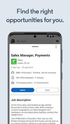 Find your next workplace and grow your professional network, one connection at a time. Show recruiters your experience when you build your resume before you start your job search. Get business insights before you apply for jobs, including salary, job responsibilities, or company news. Use your resume or professional profile to quickly and safely apply for the right position for you.